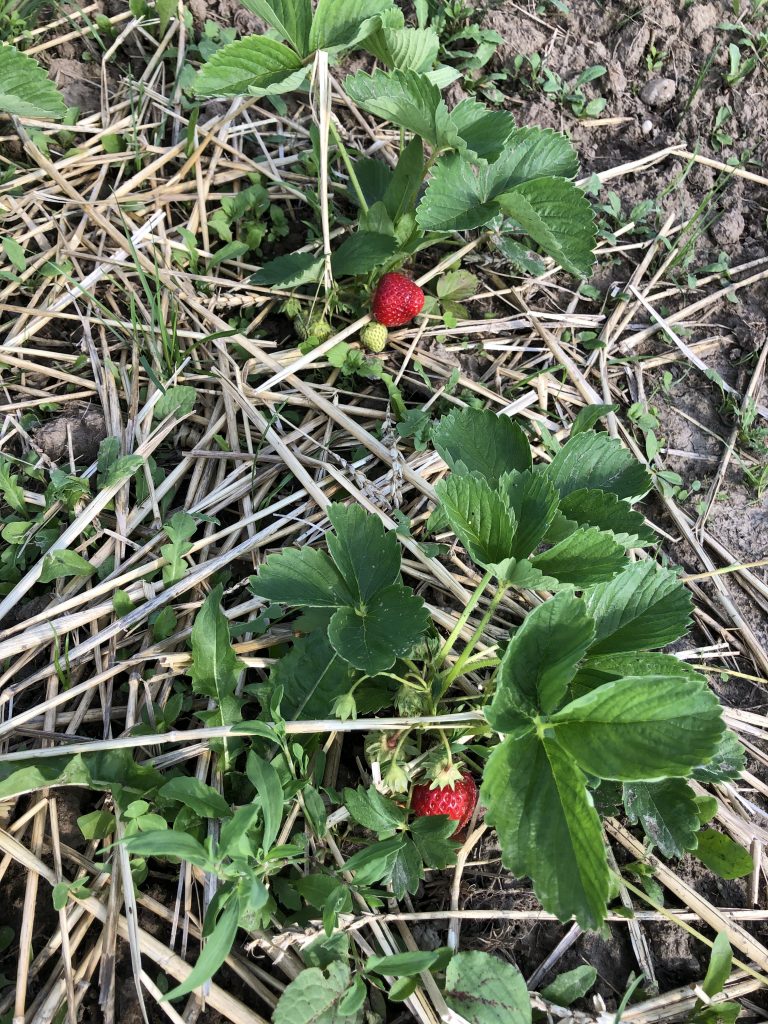 Während einzelne Pflanzen (speziell die frisch ausgesäten) erst starten, dürfen wir bei anderen schon eine kleine Ernte mit nach Hause nehmen (oder auch gleich vernaschen) – Salat, Radieschen und Erdbeeren.